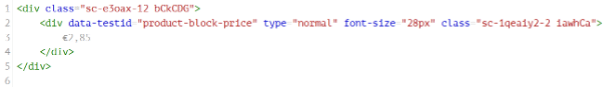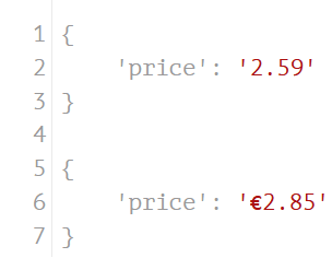 Aside from reducing data size, the extracted layer serves one other purpose. If we compare the two code snippets above, it’s easy to see that they contain similar information – ‘2.59’ and ‘€2.85’ – but the structure in which that information appears is drastically different. Even worse, since companies regularly update their websites, there is no guarantee that a store’s website will have the same structure tomorrow as it does today. Clearly, some logic is needed to determine where which data sits before we can standardise the data. To simplify the standardisation process, we eliminate this variance here by assigning standardised keys to the data at this stage. For example, for the two snippets above, the data in the extracted layer would consist of 2 JSON documents, with as contents: