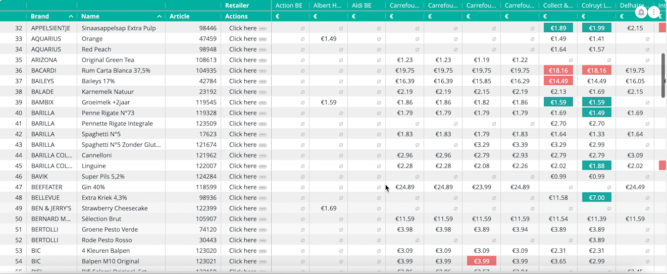 The end result? You get to compare price/product information over time and across different retailers. This allows you to make solid business decisions by either using our price engine dashboards or by integrating the data internally to gain insights.